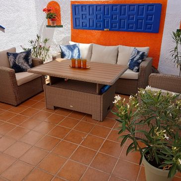 The Moroccan Courtyard, at its best in autumn, winter and spring. The Terrace, morning coffee and evening G&T...perfect.